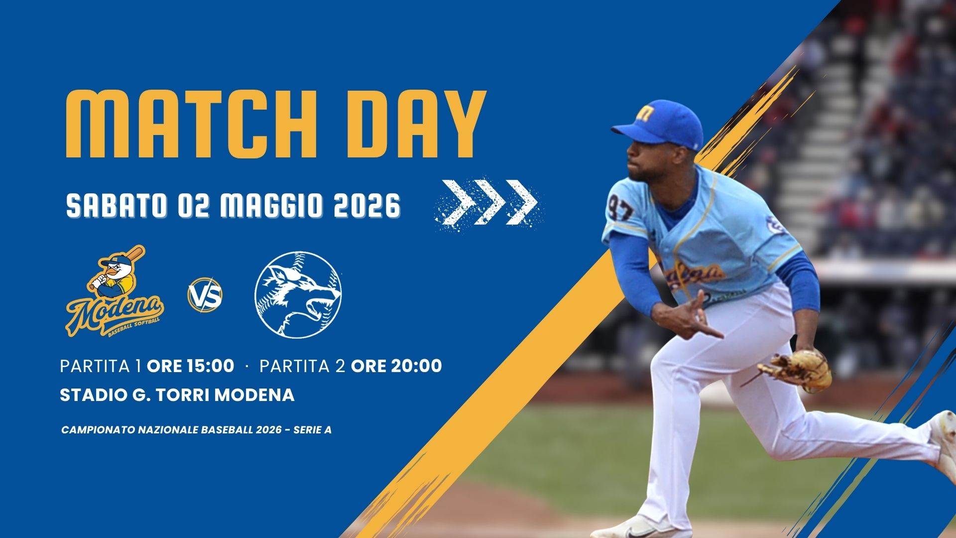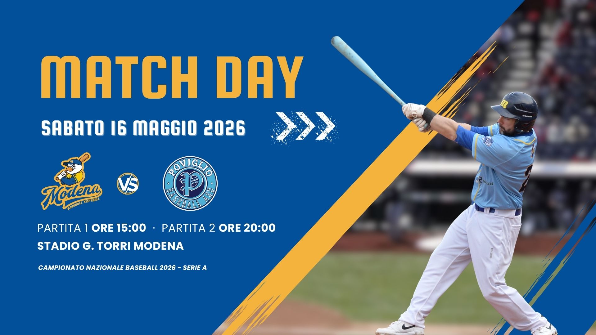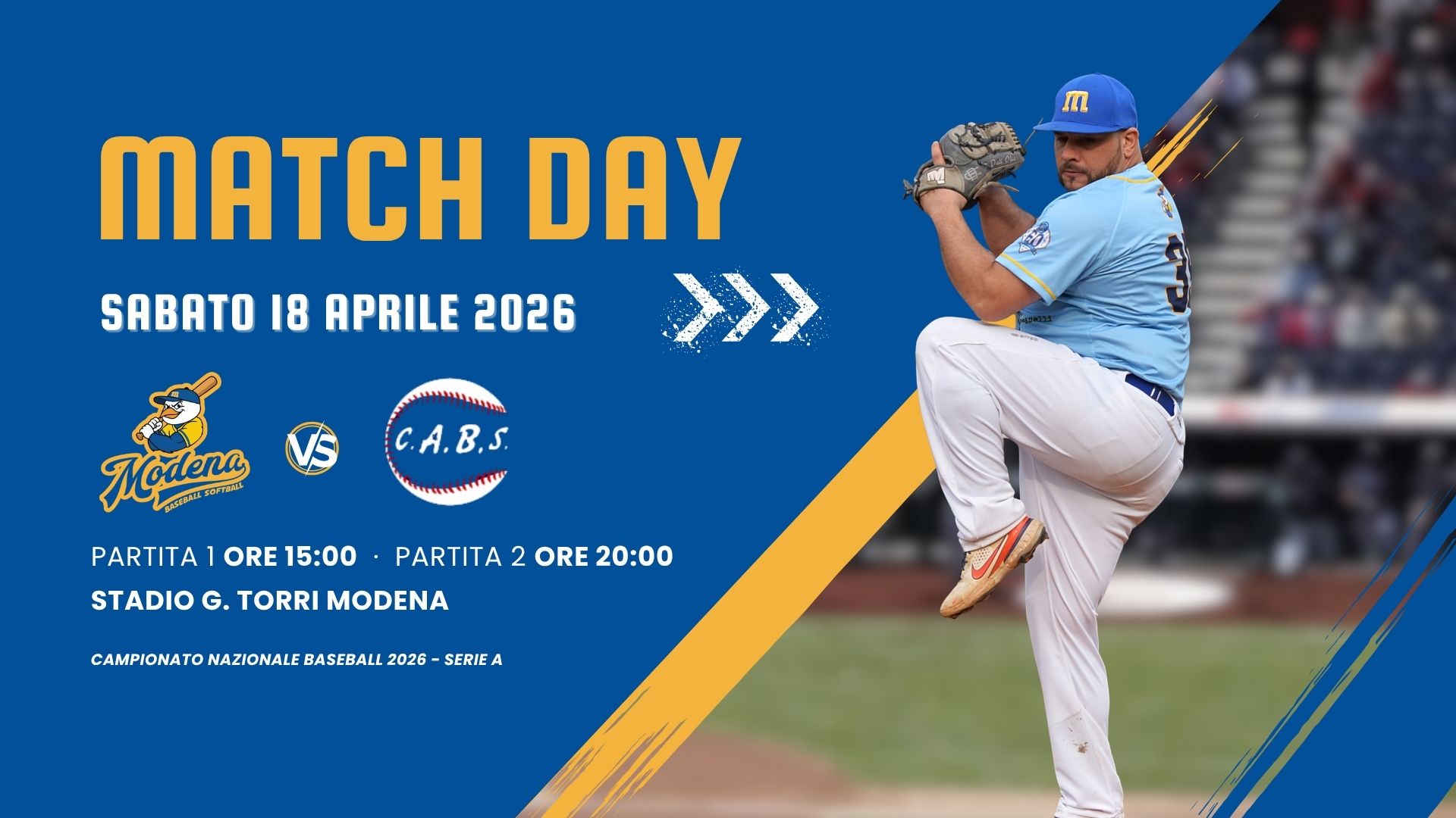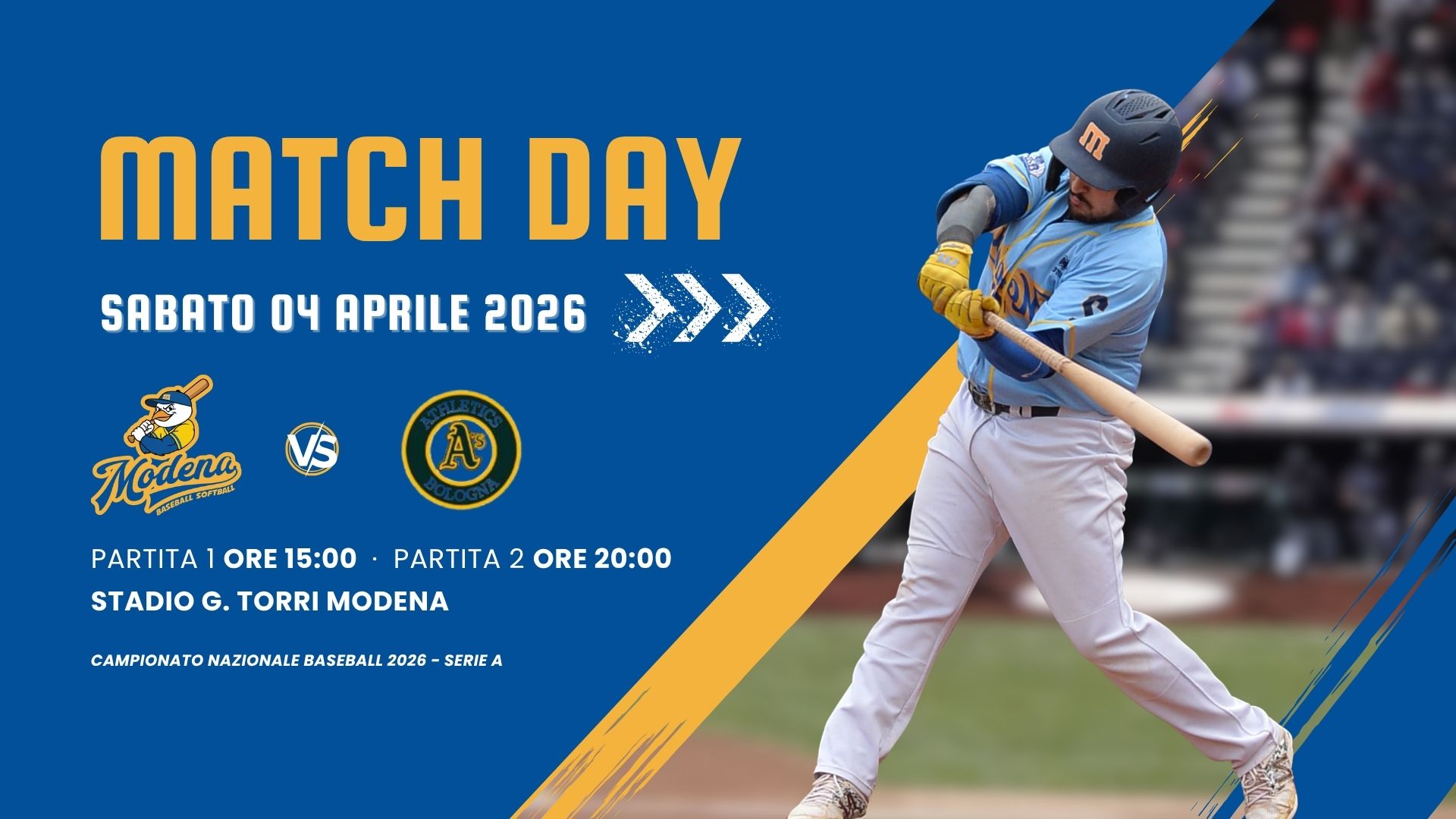 SABATO 04 APRILE 2026: Prima partita inizio ore 15:00 – Seconda partita inizio ore 20:00 - STADIO COMUNALE TORRI – Via Minutara, 24 – Modena (MO) Regular season - Serie A (Girone A - SILVER) - Campionato nazionale Baseball 2026 -Ogni squadra disputa un calendario di incontri andata e ritorno all’interno del proprio girone. Le date precise […]