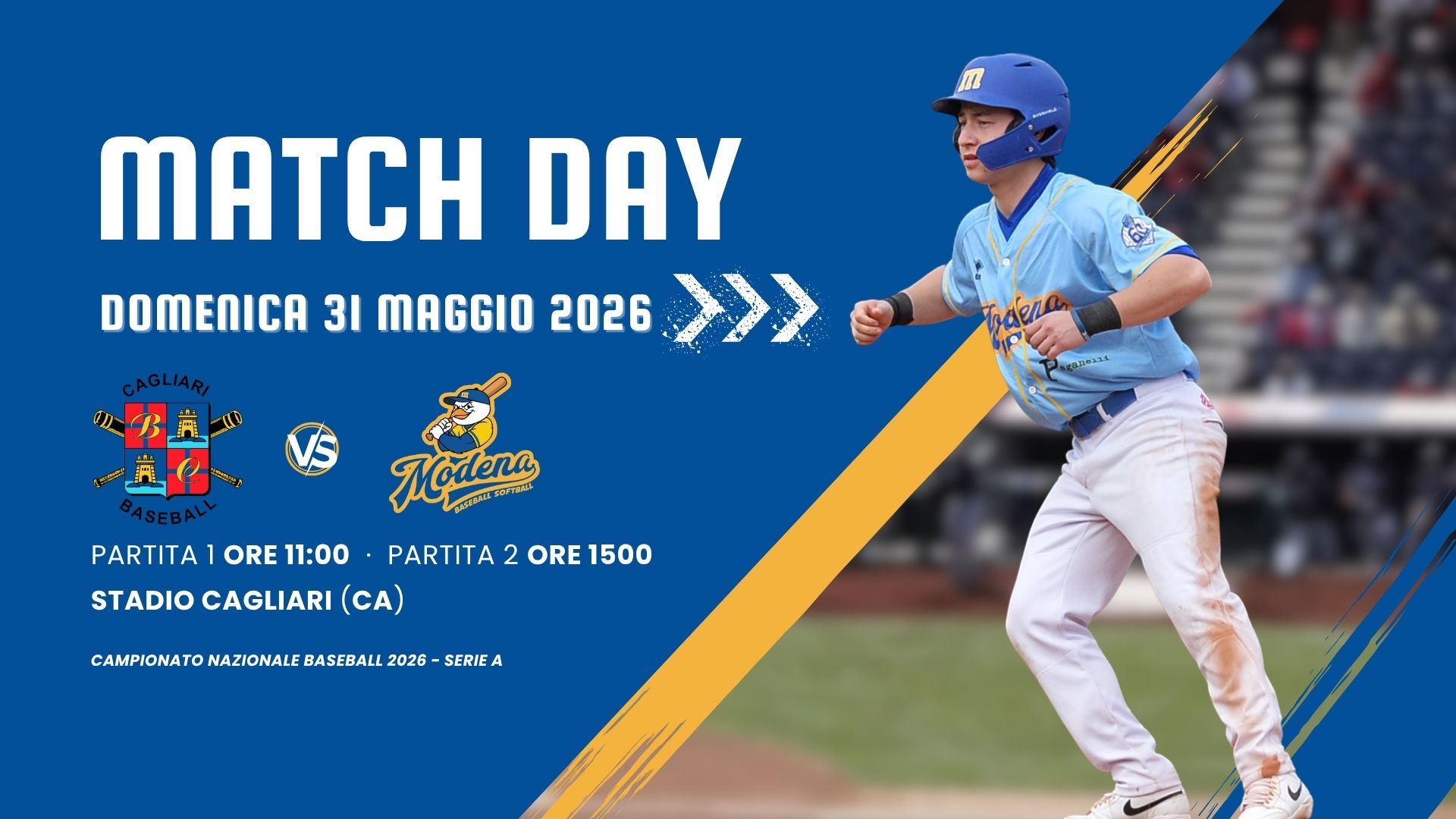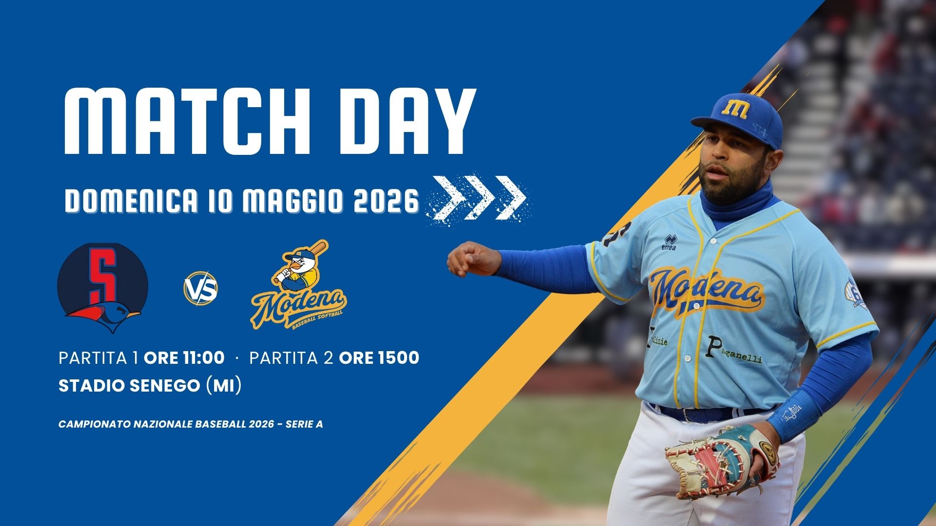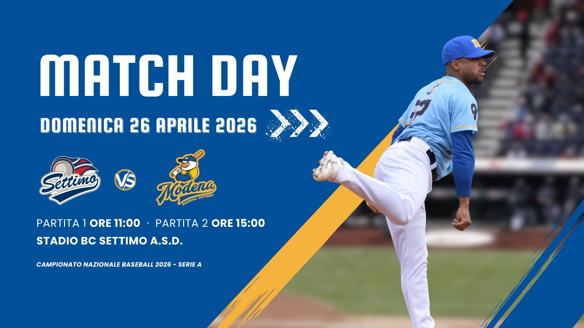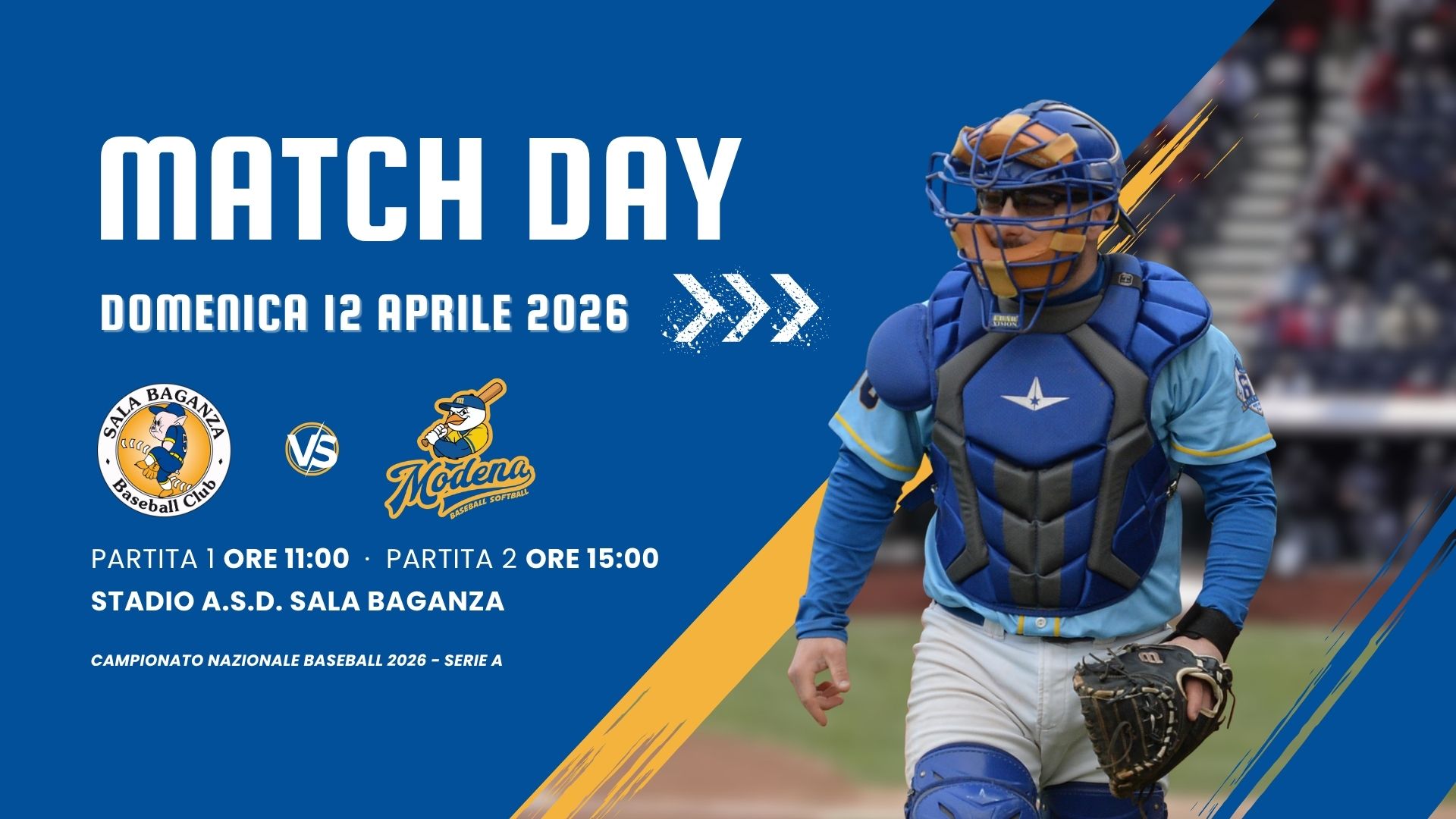 SABATO 04 APRILE 2026: Prima partita inizio ore 15:00 – Seconda partita inizio ore 20:00 - STADIO COMUNALE TORRI – Via Minutara, 24 – Modena (MO) Regular season - Serie A (Girone A - SILVER) - Campionato nazionale Baseball 2026 -Ogni squadra disputa un calendario di incontri andata e ritorno all’interno del proprio girone. Le date precise […]