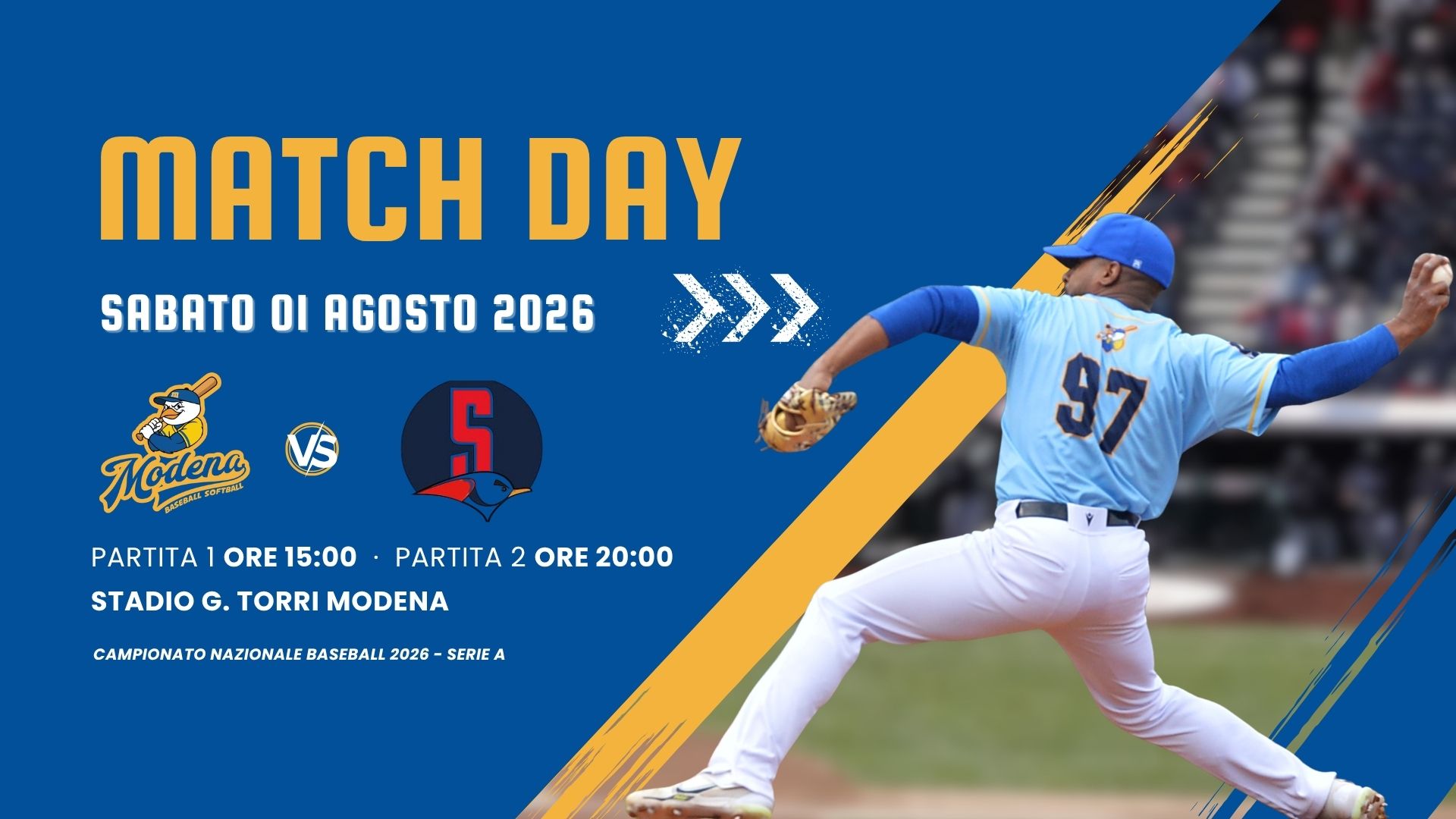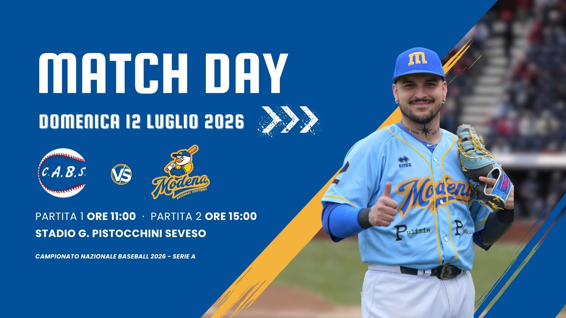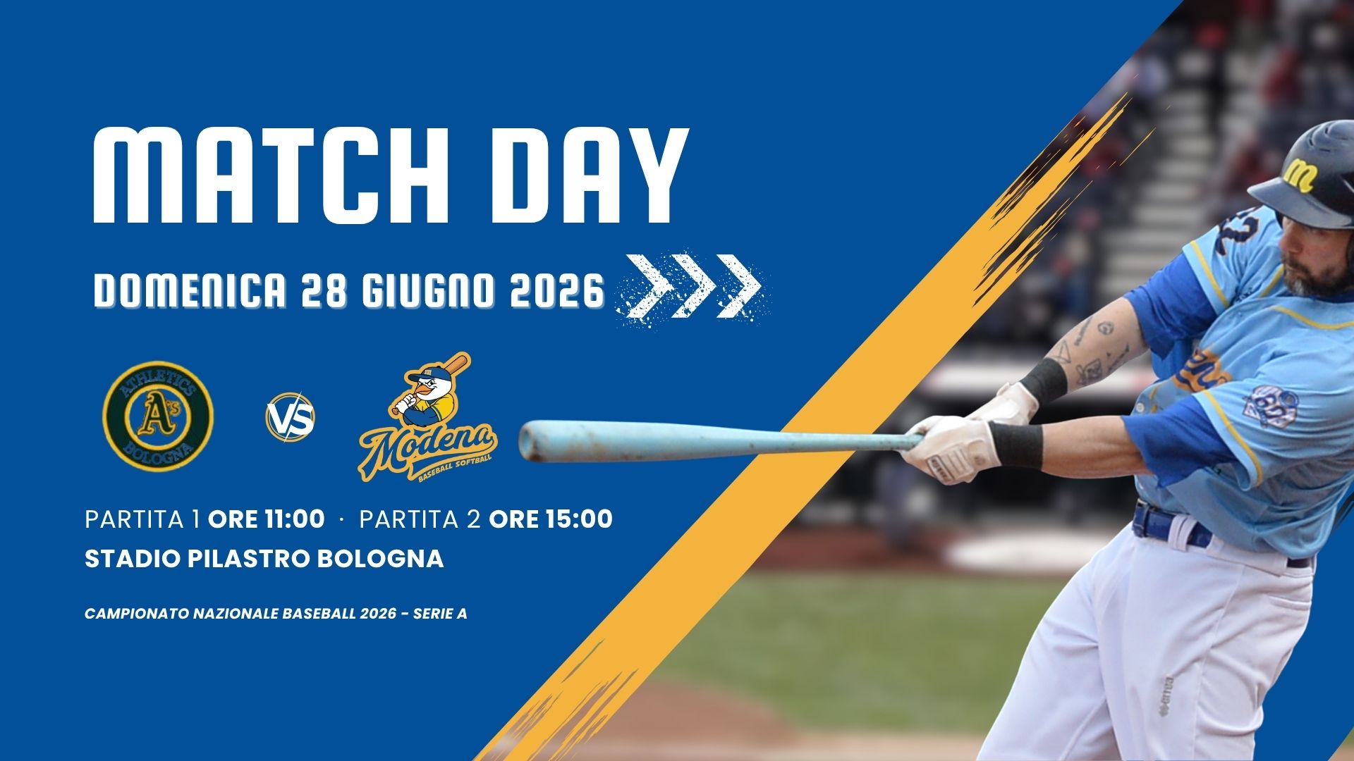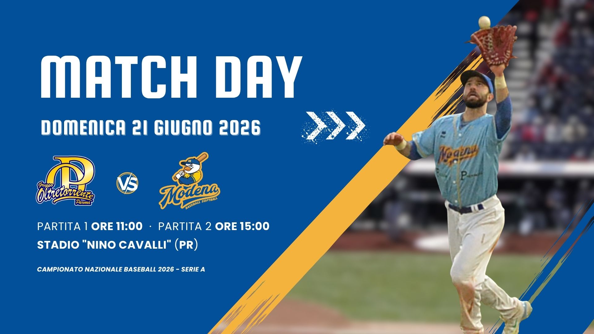 DOMENICA 21 GIUGNO 2026: Prima partita inizio ore 11:00 – Seconda partita inizio ore 15:00 -STADIO DA BASEBALL "NINO CAVALLI" - Via Teresa Confalonieri Casati, 22, Parma Regular season - […]