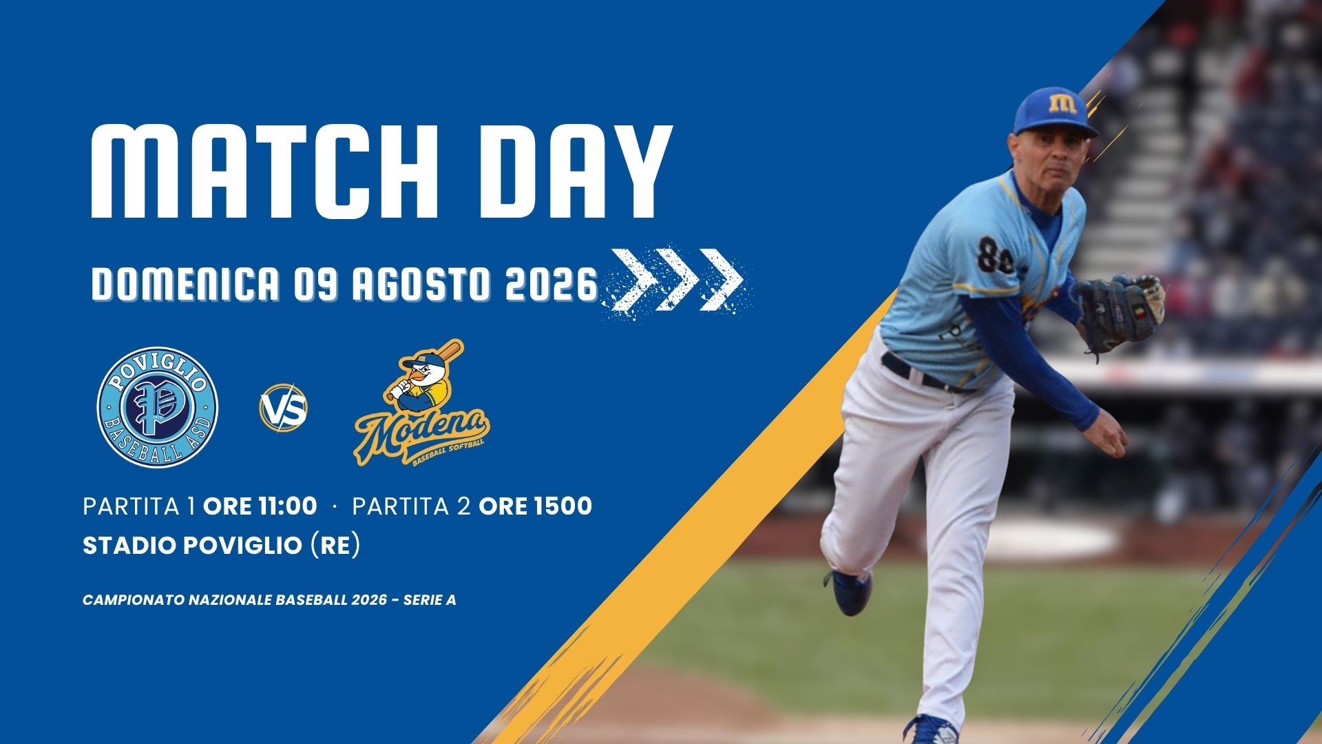 DOMENICA 09 AGOSTO 2026: Prima partita inizio ore 11:00 – Seconda partita inizio ore 15:00 -STADIO POVIGLIO - Via Gruara, 81/1 - Poviglio (RE) Regular season - Serie A (Girone […]