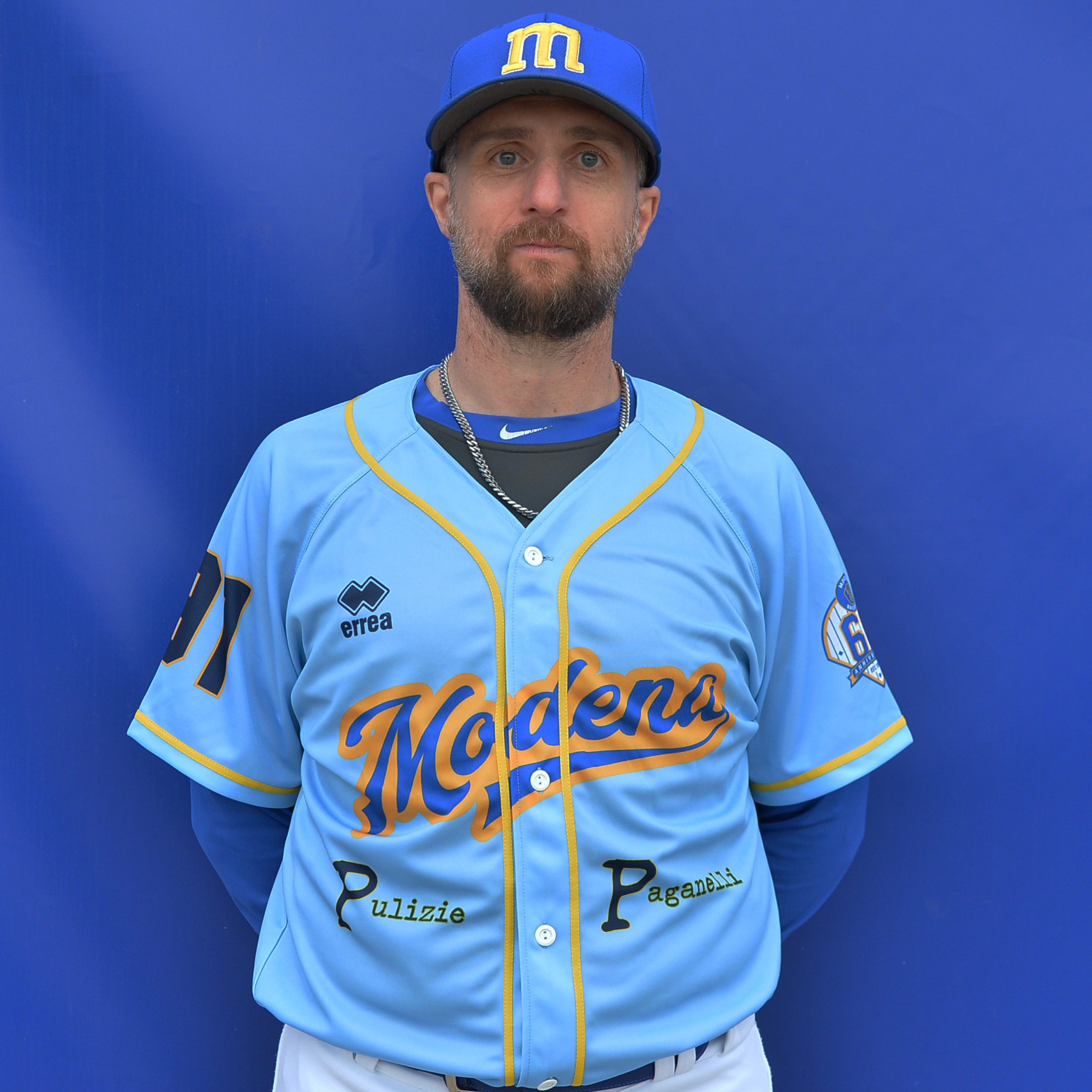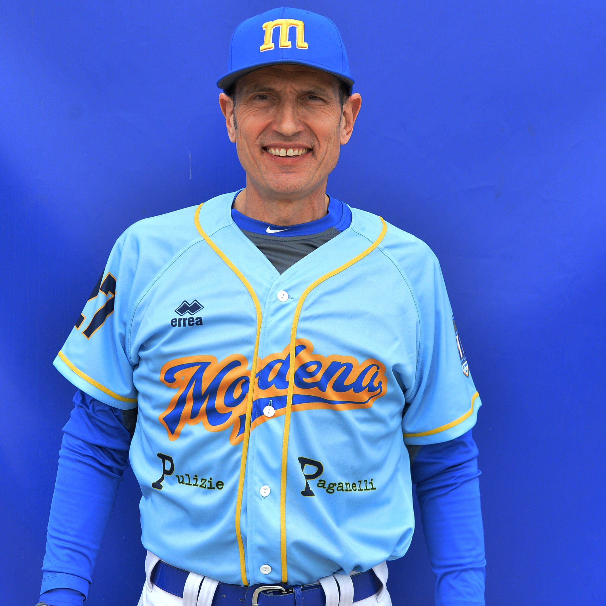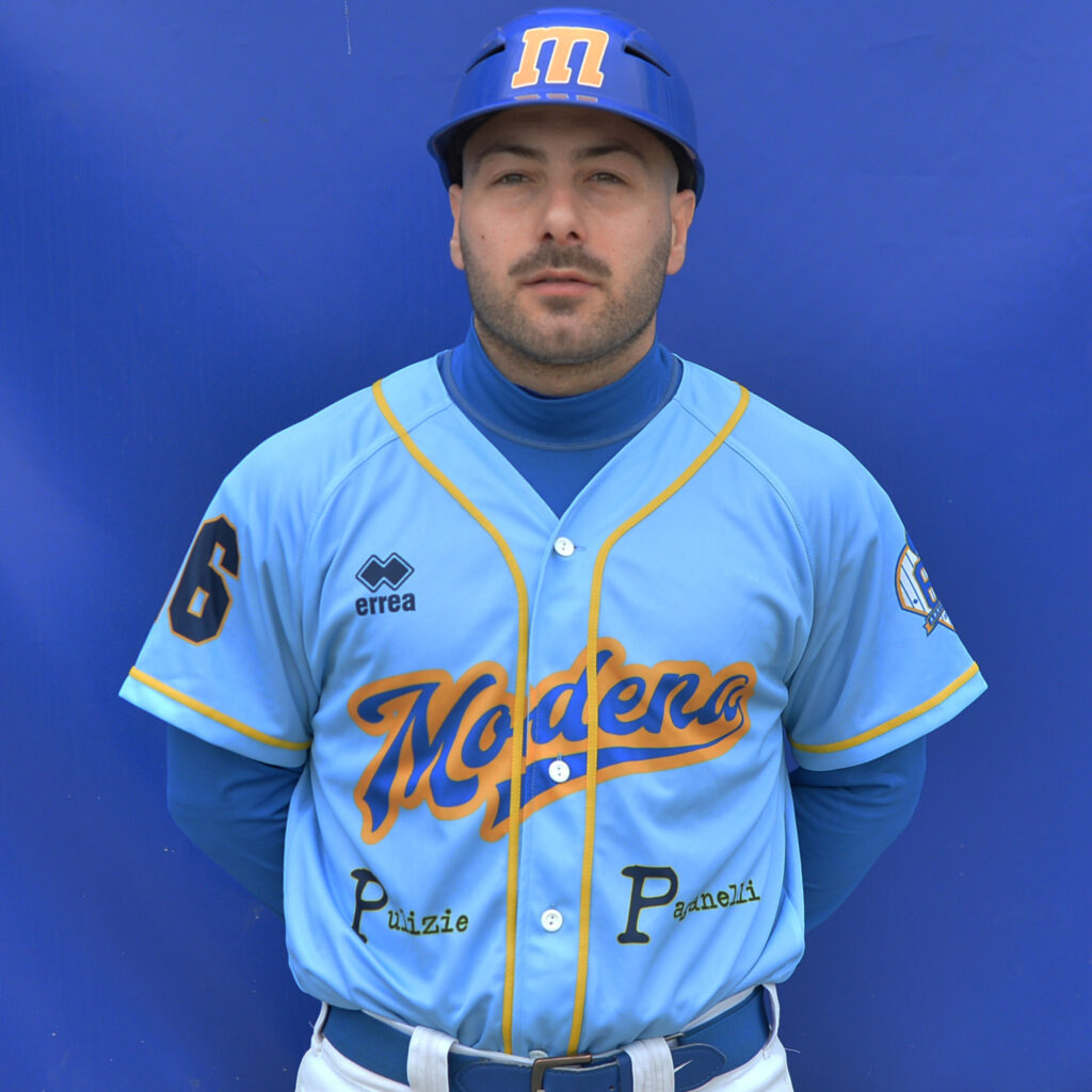 Coach: Nato a Modena il 26/08/1972 cresciuto dall’età di 8 anni nelle giovanili del Modena grazie al prof Roberto Gheduzzi, nel ruolo di interno nel 1995 conquista la promozione dalla serie A2 alla massima serie A1 con il Modena Baseball Club.